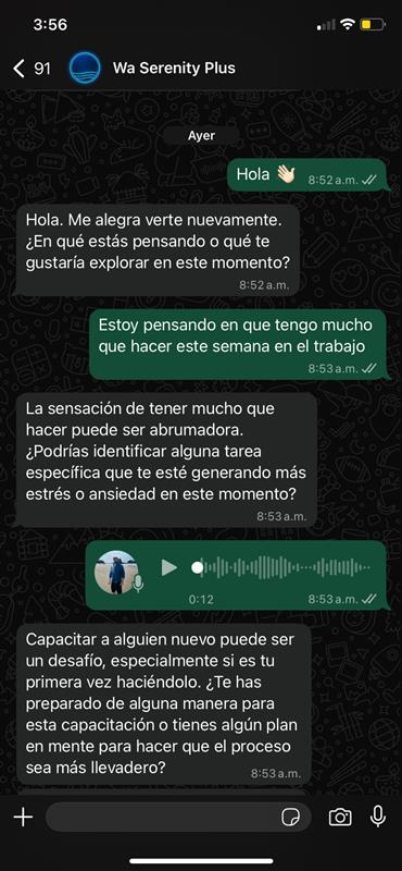 "Serenity ha sido para mi un aliado perfecto en mis consultas. En la aplicación he encontrado la tranquilidad de escuchar atenta a mi paciente, sin la necesidad de tomar el apunte que en ocasiones hace sentir incómodo. Después de la consulta con las notas tomadas, puedo llevar de manera ordenada y alimentar un poco más lo que acabamos de hacer en la sesión [...] Y antes de la sesión me ayuda revisar las notas y tener una propuesta para la consulta del día."
