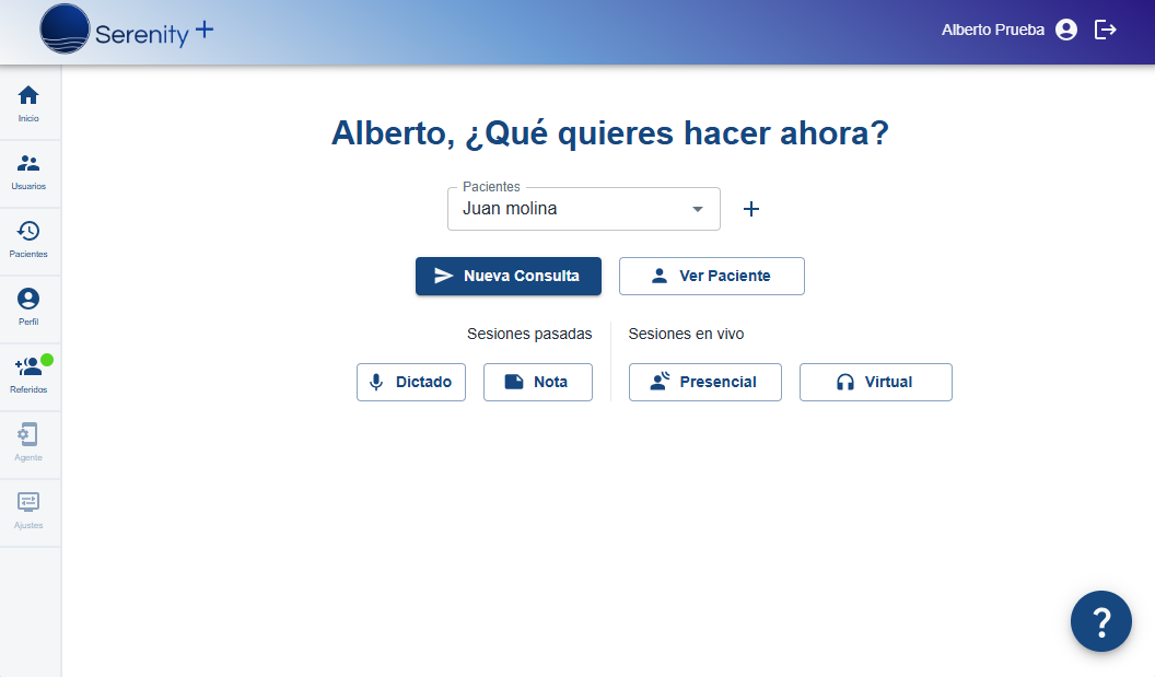 Escoge al paciente y después el enfoque terapéutico que prefieras para esa sesión, Serenity personalizará el análisis del contenido para adaptarse a tu estilo de tu terapia.