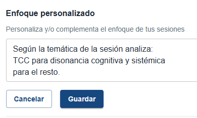 Contamos con los enfoques más conocidos, sin embargo, puedes crear tu propio enfoque personalizado para que nuestra IA analice la sesión lo más cercano a como tu lo harías.